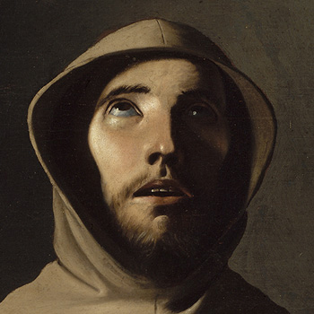 The son of a wealthy merchant, Saint Francis (1181/1182–1226) grew up enjoying a luxurious life, but he soon became dissatisfied with his worldly existence. He exchanged clothes with a beggar and began his spiritual quest. Francis so identified with Christ's suffering on the cross that he miraculously received Christ's wounds (the stigmata) on his hands, feet, and chest. He attracted numerous followers in his lifetime and founded the Franciscan order, which was based on the rules of poverty, chastity, and obedience, symbolized by the three knots in the rope worn around their habits. The austere and hermitlike life of Saint Francis made him an exemplary figure in Spain after the Counter-Reformation.