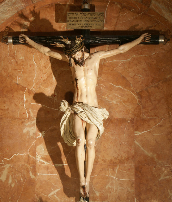 Juan Martínez Montañés (1568–1649) and unknown painter, Christ on the Cross (Cristo de los Desamparados), 1617, painted wood, 350 x 200 x 57.5 cm (137 13/16 x 78 3/4 x 22 5/8 in.), Church of the Convent of Santo Ángel, Carmelitas Descalzos, Seville