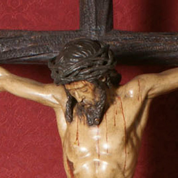 Juan de Mesa (1583–1627), Christ on the Cross, about 1618–1620, polychromed wood, 100 x 65 x 22 cm (39 3/8 x 25 9/16 x 8 11/16 in.), Archicofradía del Santísimo Cristo del Amor, Collegiate Church of El Salvador, Seville