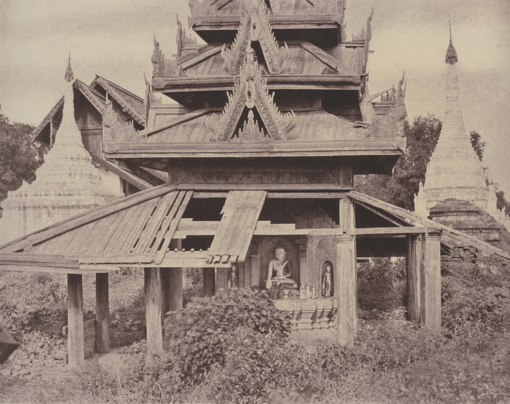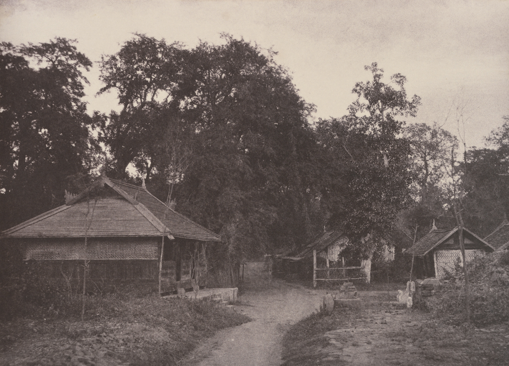 The photographs Tripe made on the mission to Burma reveal his methodical approach. Taken together, his studies of the region constitute carefully planned sequences of pictures that show the sites from varying distances and viewpoints, providing a systematic visual record of them. At Pugahm Myo, he first photographed the scene from afar (see the previous slide) and then moved closer to depict the buildings and their layout in greater detail.