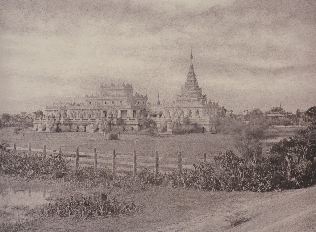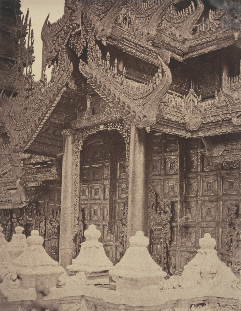 This photograph shows the eastern entrance to the Royal Daughter’s Monastery, built as a pious offering by the queen during King Pagan’s rule from 1846 to 1852. Only the highest ranking patrons could afford the enormous expense of building such a richly ornamented monastery.