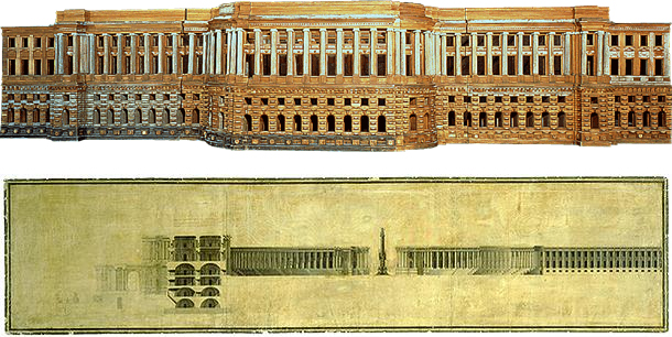(top) Vasily Ivanovich Bazhenov, Model for the Central Part of the Façade of the Great Kremlin Palace, Moscow, 1769-1773, A. V. Shchusev State Research Museum of Architecture, Moscow