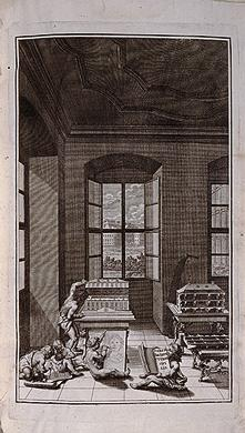 This carefully finished model of 1648-1650 was probably made to present the architect's design to the city council. The exterior is adorned with intricate sculptural and decorative details, and the interior demonstrates the arrangement of rooms inside the building. The model consists of several levels, which can each be removed, revealing numerous rooms, such as the mayor's office, the guard rooms, an arsenal, the city bank, a courtroom, a prison, and a torture chamber. With few exceptions, the Town Hall was built as shown in the model, and inaugurated on 29 July1655.