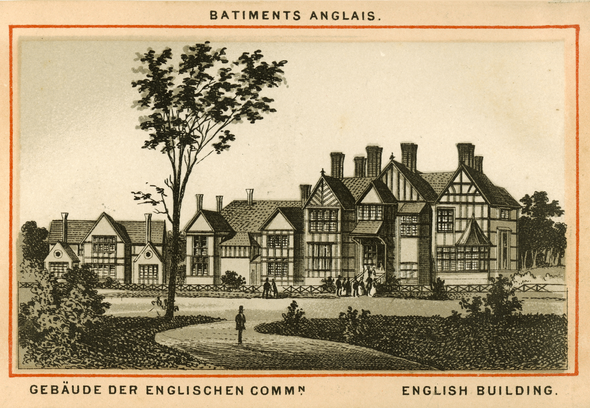 Nine countries constructed pavilions at the centennial, and a total of 56 countries or colonies participated. The British Buildings, constructed in a half-timbered English Renaissance style, were occupied by the British Commissioners to the fair.