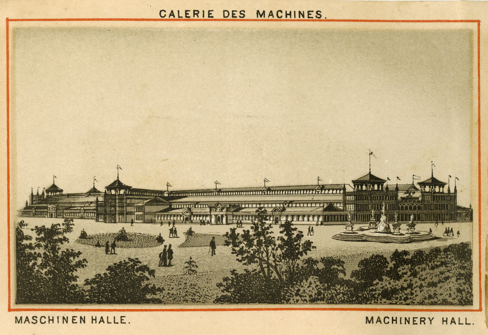 The 14-acre Machinery Hall displayed mechanical creations of cutting-edge technology, including the telegraph, the telephone, typewriters, magic lanterns, and steam engines.