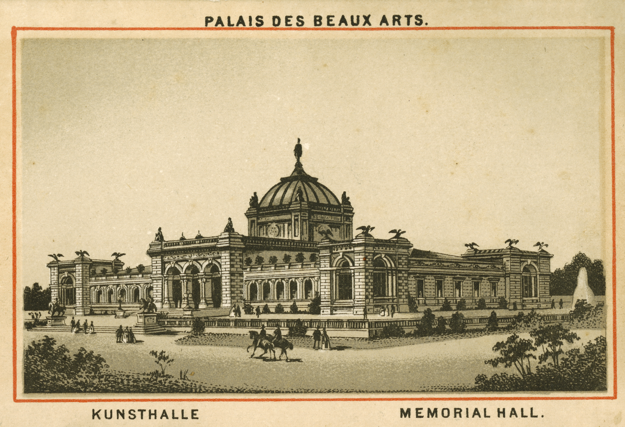 Built of granite, with a statue of Columbia topping its central dome, Memorial Hall housed the first major international art exhibition ever held in the United States. Twenty countries sent paintings, drawings, sculpture, photographs, and examples of applied arts. The building itself became a prototype for many museums and galleries and still stands in Fairmount Park. Memorial Hall is now the headquarters of the Fairmont Park Commission, where a model of the Centennial Exposition is on display.