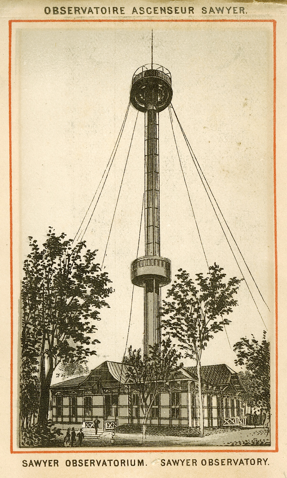 This observation tower, located on Belmont Plateau, was one of three iron towers built for the centennial and gave panoramic views of the fairgrounds and nearby Philadelphia. The observatory was dismantled in 1882. Another tower, Lemon Hill Observatory, was sold and disassembled in 1899. The third, George’s Hill Observatory, was moved to Coney Island, where it remained until it burned in 1911.