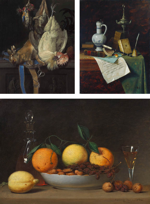(bottom) Raphaelle Peale, A Dessert, 1814, oil on wood, National Gallery of Art, Washington, Gift of Jo Ann and Julian Ganz, Jr. in memory of Franklin D. Murphy, 1999.44.1
