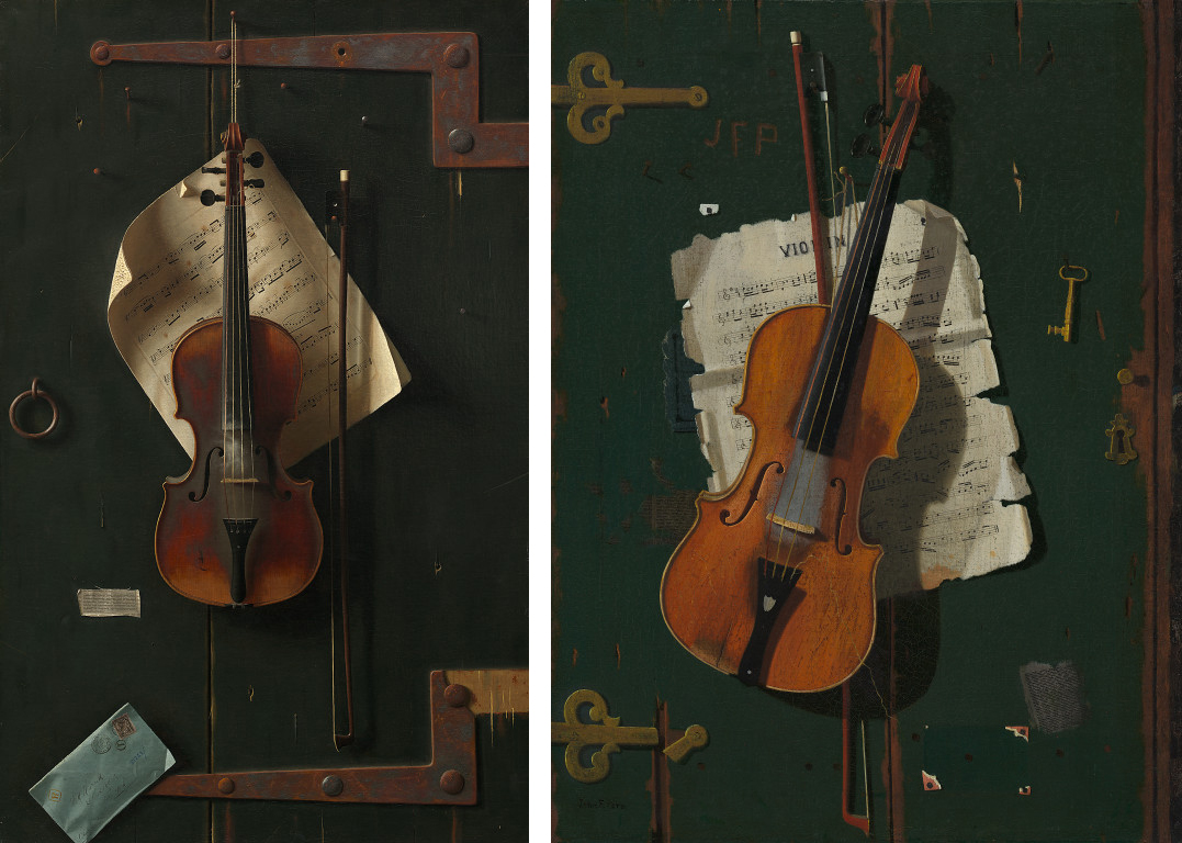 (right) John Frederick Peto, The Old Violin, c. 1890, National Gallery of Art, Washington, Gift of the Avalon Foundation, 1974.19.1
