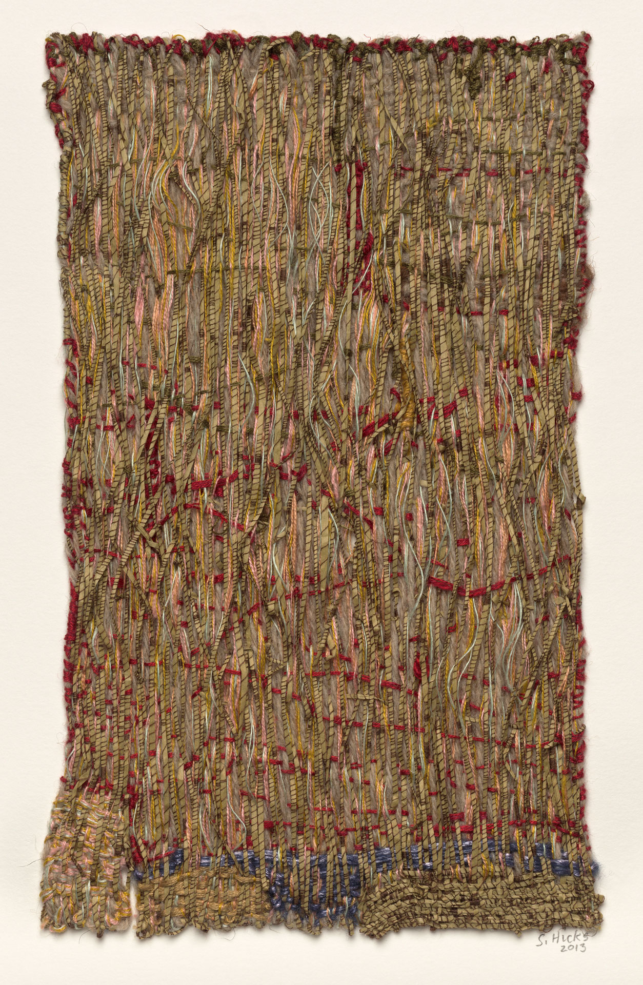 This delicate work, smaller than a standard sheet of paper, is carefully constructed from fibers. Sheila Hicks has built a long career exploring the intersections between so-called fine art and textiles. In so doing, she has brought artistic practices like weaving and tapestry, which are often denigrated as crafts and women’s work, into the mainstream. Hicks enrolled at the Yale School of Art during the 1950s and studied with Josef Albers, an abstract artist and color theorist originally from Germany. As a student, Hicks also became acquainted with the work of Albers’s wife, Anni Albers, considered one of the foremost textile artists and designers of the 20th century. A grant to study painting in Chile sparked Hicks’s interest in Indigenous textile traditions and led her to embark on a self-guided tour through every country of South America. During her nomadic career, she has developed fiber arts workshops in Mexico, Chile, and South Africa. Today she works largely from a studio in Paris. Hicks’s work spotlights the time and labor that textile arts entail—hours spent in repetitive motions and gestures to create pliable forms that reveal the traces of their making. Although bound by their structure, her works often appear remarkably free and expressive. Modestly scaled works, such as, Embedded Thoughts, made of narrow strips of fragile paper wrapped in tiny threads of silk, serve as “sketches” in which the artist works through experimental ideas. Are there any traditions that have been passed down among women in your community or culture? Do you participate in these traditions? Why or why not?