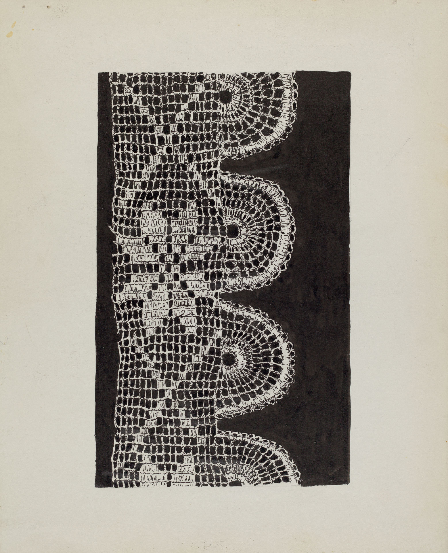 This work is part of the Index of American Design (IAD), a body of 18,000 drawings that chronicle the history of American decorative art, folk art, and craft objects from the 17th century until nearly the turn of the 20th century. The IAD was a project of the Works Progress Administration (WPA), created during the Depression to provide employment to out-of-work people, including artists. There was a higher proportion of women working in the IAD project than in other federal art programs at the time, possibly indicating greater opportunity for women illustrators. These jobs were a small portion of the total WPA jobs created, the great majority of which were available in construction, building roads and infrastructure, and largely reserved for men.