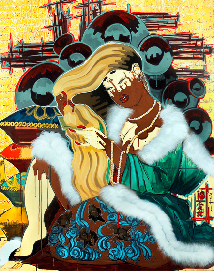 Rozeal uses the title of this work, a play on Aphrodite, ancient Greek goddess of love and beauty, to present a cross-cultural rebellion on beauty ideals that traverses the Eastern and Western Hemispheres.